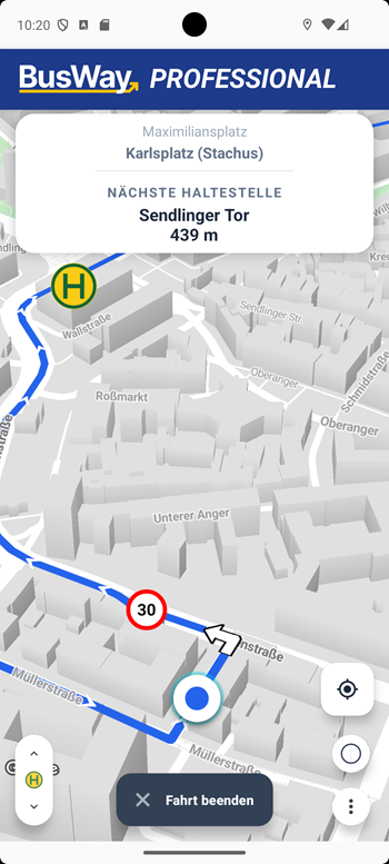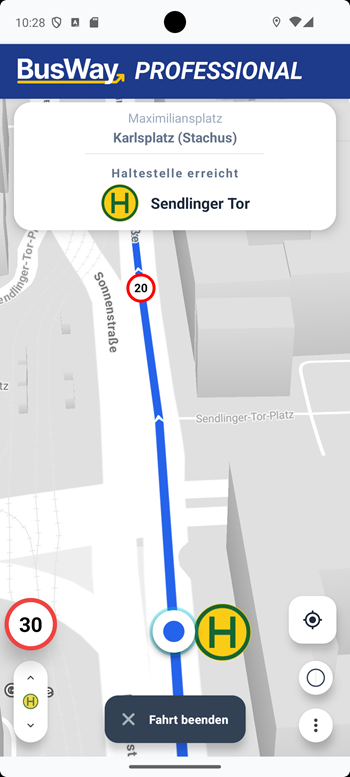BusWay specifically supports you in braking precisely for stops – even with poor visibility or obscured signs.